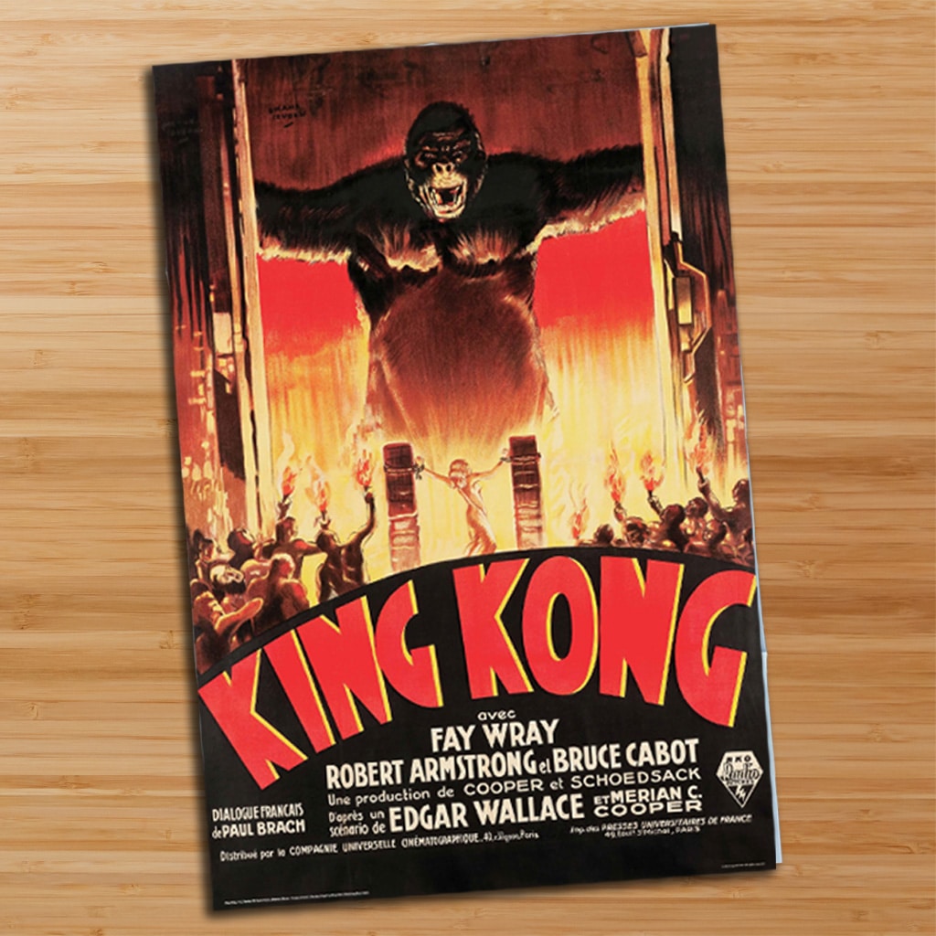 - Vintage movie poster featuring the monster movie King Kong on the other side