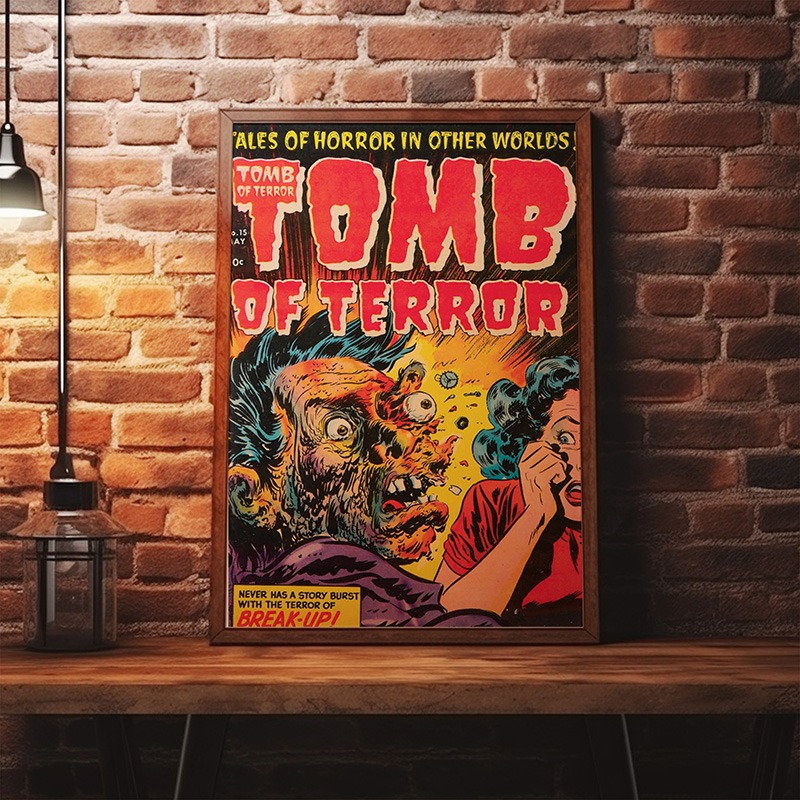 - HIGH QUALITY LARGE ART PRINT: Each poster sized Tomb of Terror #15 reproduction horror comic cover features meticulously restored, vibrant artwork printed on thick matte art paper.