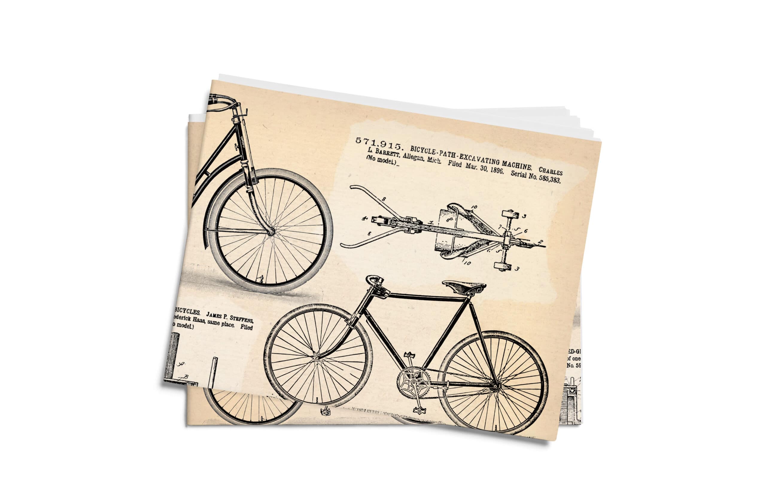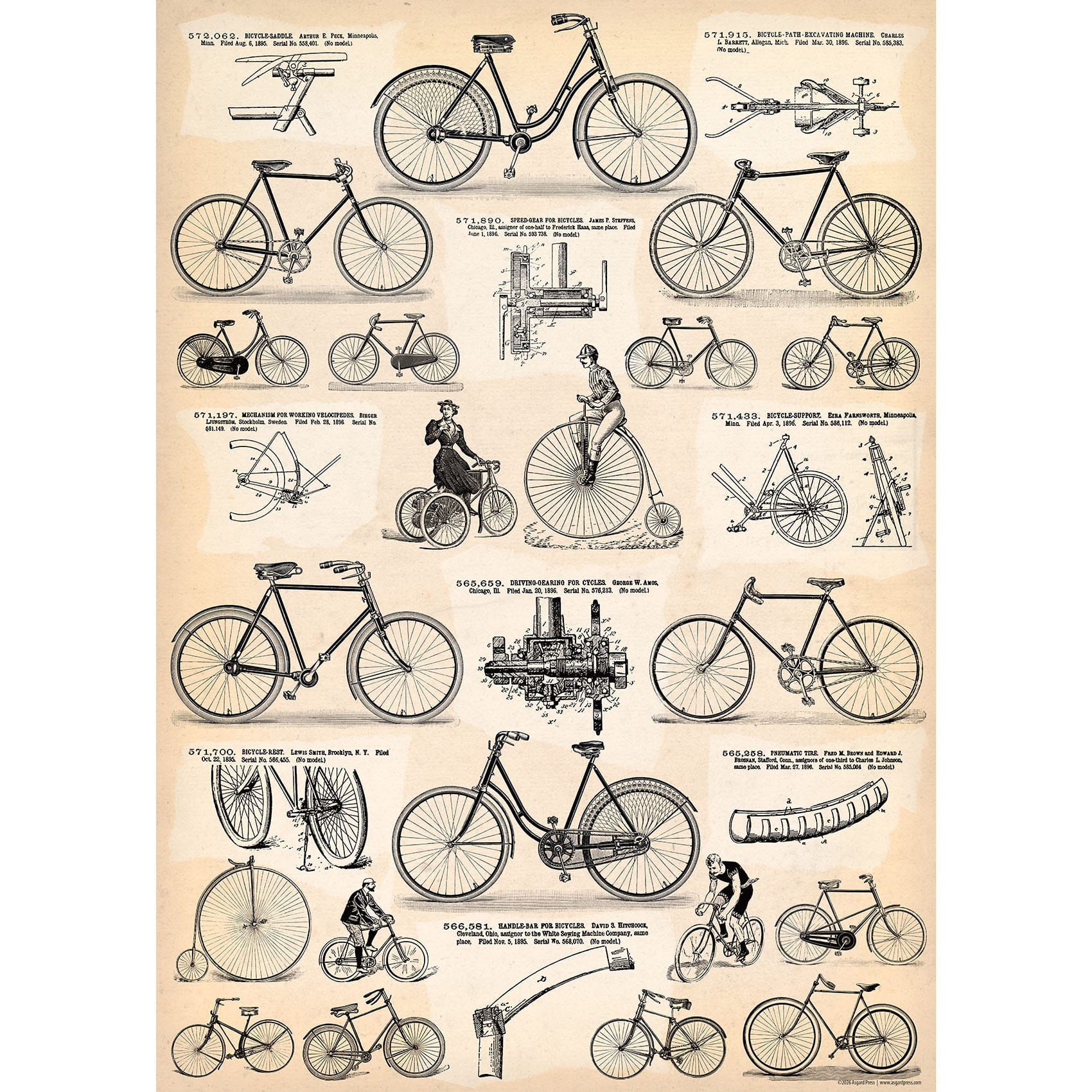 - ANTIQUE BICYCLE THEME featuring vintage engravings of bicycles from the Victorian era